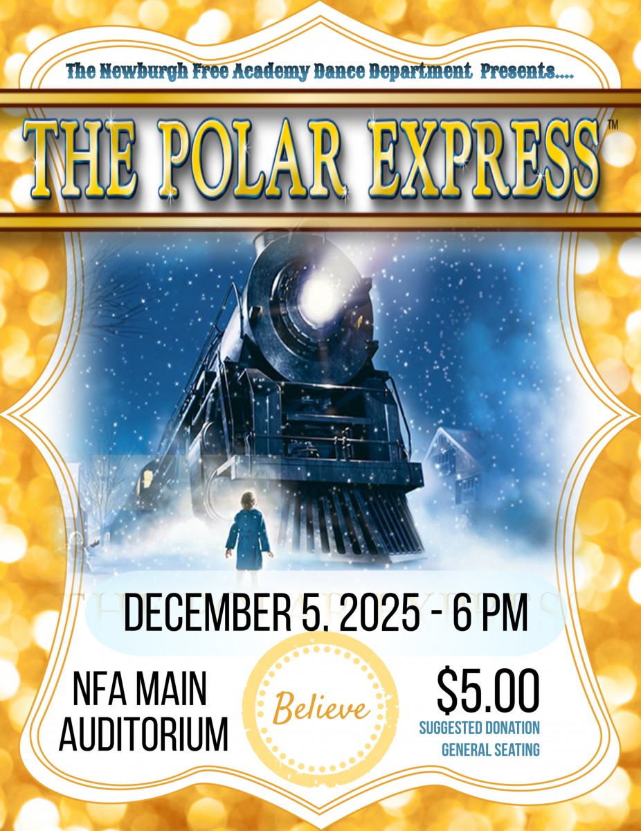 The NFA Dance Department presents an all-dance production of The Polar Express on Friday, December 5th, at 6:00 PM. Join us for holiday fun as the dancers of the NFA Dance Department bring this classic story to life on stage through movement and music! A suggested donation of $5.00 will be accepted at the door. Seating is General Admission.