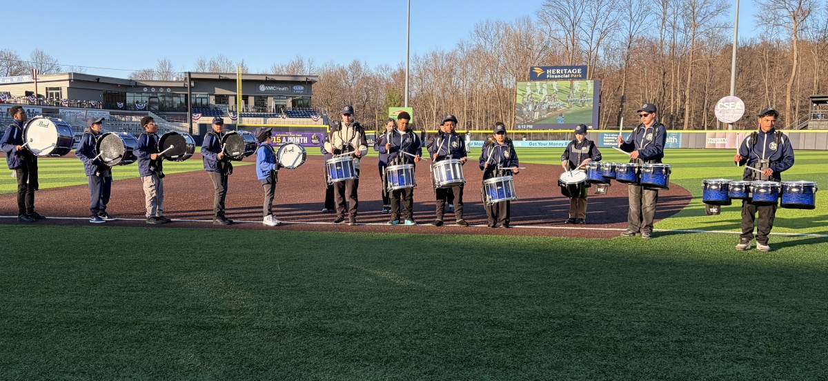 The NECSD Empire Drumline performed for the Hudson Valley Renegades' season-opening baseball game. Despite the cold temperatures, the group celebrated the new baseball season playing for their fans.